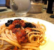 Когда у меня нет времени на приготовление полноценного обеда или ужина, итальянская кухня приходит мне на помощь :) Одно из моих любимых блюд из разряда "быстро, просто и вкусно" - это спагетти с оливками и помидорами. Минимум возни, минимум времени - и очень достойный результат. Попробуйте приготовить спагетти с оливками и помидорами сами - вам обязательно понравится это легкое блюдо ;)