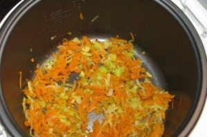 1. Wash and peel the onion and carrot, then chop them. Heat oil in "Baking" mode and sauté the vegetables for 10 minutes.