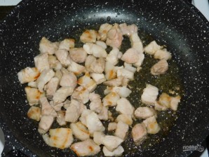 Cut the pork into small pieces and fry.