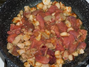 Add the sliced chicken liver and fry everything together for 5 minutes.