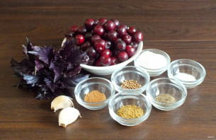 A delicious addition to everyday and festive dishes. Note that salt, sugar, and spices can be adjusted to your taste. If you have coriander in powder form, add it directly to the pot with the other spices. Cherry tkemali pairs perfectly with meat dishes. Be sure to try it! Serve the sauce with meat, fish, or use it as a salad dressing.