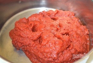 1. Put any tomato paste into the saucepan where you will be cooking.