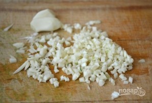 5. Peel the garlic cloves and finely chop them, or press them using a garlic press.