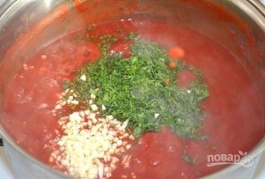 8. After boiling, add the chopped herbs and garlic to the pot.