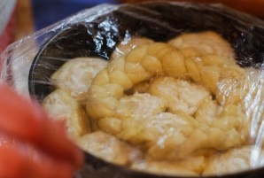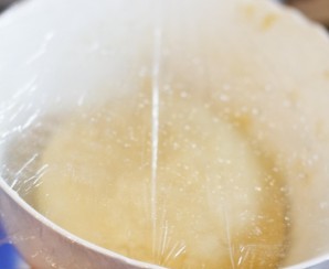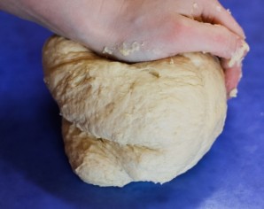 Готовое тесто смазываем немного растительным маслом, накрываем пищевой пленкой и ставим на пол часа в теплое место. Затем нам необходимо его немного обмять и снова поставить в тепло на 30-40 минут.