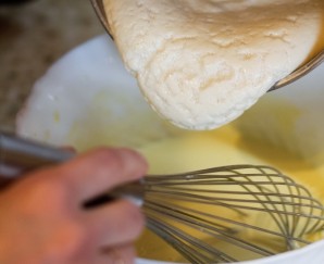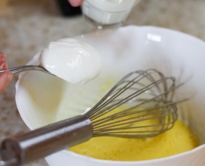 Добавляем ко взбитым яйцам сметану и еще раз все взбиваем.