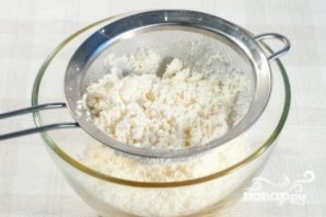 Творог протрите через сито, чтобы не осталось комочков.