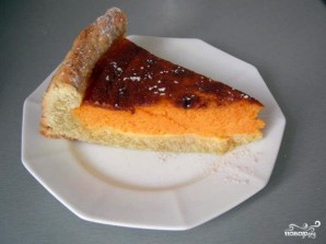 Тыквенную смесь аккуратненько смешиваем со взбитыми белками и выкладываем на песочное тесто.
