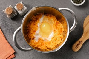 Тыкву натрите на крупной тёрке.