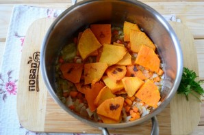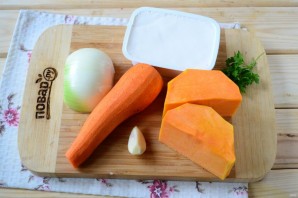 Prepare all the necessary ingredients. Peel all the vegetables and rinse them under running water. You can use any table pumpkin; its color may vary from bright orange, almost pink, to yellow.