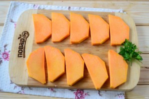 Cut the pumpkin into 8-10 mm thick slices. Place the pumpkin on a baking sheet lined with parchment paper and bake in the oven at 180°C for 20-25 minutes, until tender.