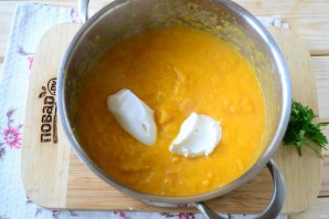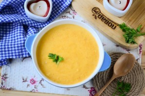 Pumpkin puree soup with processed cheese is a truly autumnal comfort dish that will win over everyone. Even if you've never tried puree soup before, this is the perfect one to start with. The soup turns out incredibly delicious. Ladle into bowls and serve.