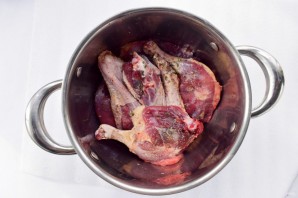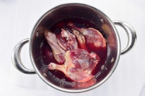 Pour the duck meat with cooled mulled wine, let it marinate for several hours, or overnight.