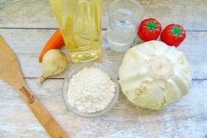 Prepare the ingredients for making vareniki with stewed cabbage.