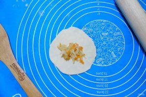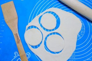 Cut off a piece of dough and roll it out into a thin layer. Cut out circles.