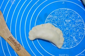 The recipe won't take much time. The dumplings are very easy to prepare. The dough recipe is excellent—it turns out very elastic and doesn't require additional flour when rolling and shaping the dumplings. Enjoy cooking! Serve hot.