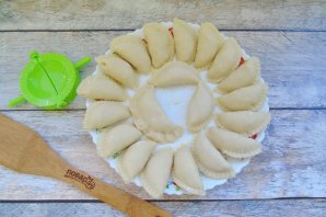 The dumplings with stewed cabbage are ready. Serve with sour cream, sauces.