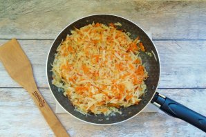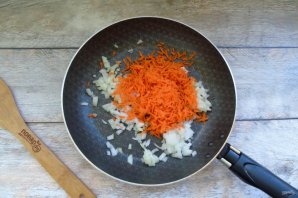 Prepare the filling. Peel and wash the onion and carrot. Finely chop the onion and grate the carrot. Place in a frying pan.