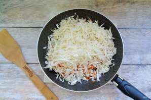 Finely chop the cabbage and add it to the onion and carrots.