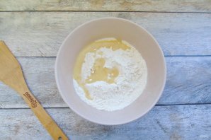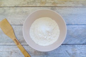 Prepare the dough. Put flour and salt into a bowl.
