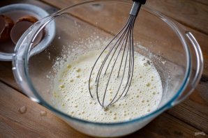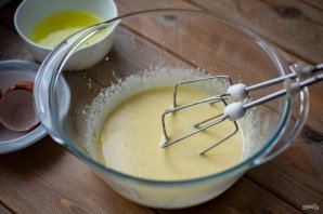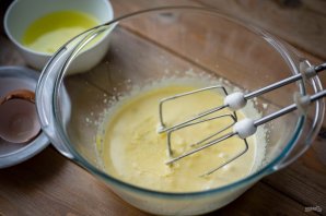 Активно перемешайте эти ингредиенты миксером до получения светлой, однородной смеси.
