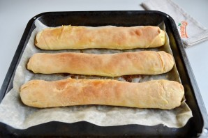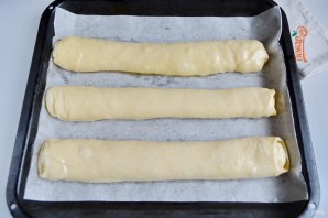 12. То же самое проделайте с оставшимися двумя кусочками теста и начинкой. Готовые вертуты положите на пергамент, смажьте растительным маслом и отправьте в горячую духовку, температура выпекания — 190 градусов, время — 40 минут.
