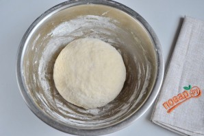 6. Замесите мягкое и пластичное тесто. Накройте пленкой и оставьте отдыхать минут на 40.