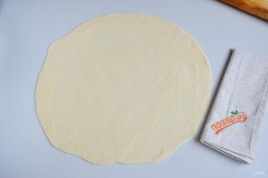 8. Стол присыпьте немного мукой. Раскатайте насколько тонко сможете тесто. Особое внимание уделите краям, серединку сильно не раскатывайте.