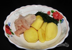 Картофель промойте и почистите. Укроп и филе тоже промойте.