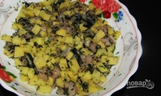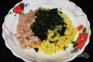 Филе и картофель нарежьте кубиками. Укроп измельчите.