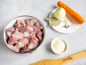 Литр процеженного бульона приготовьте с желатином в соответствии с инструкцией на упаковке. И залейте подготовленные желудки. Уберите в сторону до остывания, а затем в холодильник до полного приготовления.