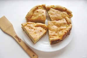 Пеките пирог в духовке при температуре 175-180 градусов 35-40 минут до румяной корочки.