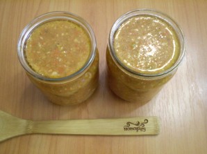 Разливаем по баночкам и закатываем при помощи ключа. Баночки и крышки нужно заранее простерилизовать.