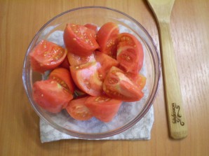 Моем помидоры, затем нарезаем их удобными (для горлышка мясорубки) кусочками.