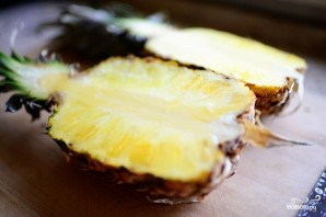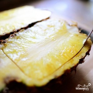 Разрезаем ананас пополам.