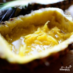 Получившуюся фруктовую начинку кладем в половинки ананасов.