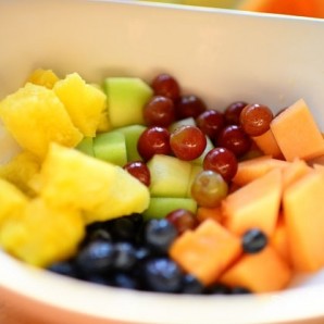 Смешиваем в мисочке нарезанные дыни, ананас, чернику и виноград.