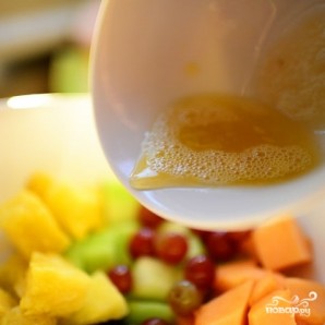 Заливаем смесью ананасового сока и меда. Перемешиваем.