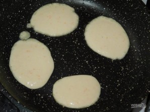 На горячую сковороду ложкой наливайте немного теста и обжаривайте с двух сторон.
