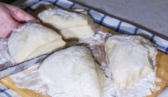 3. Делим тесто на 4 части.