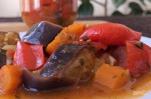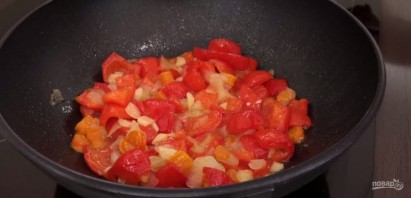 3. Перемешайте и тушите еще 15 минут. Добавьте баклажаны, тушите еще 15 минут. Затем добавьте помидоры, все специи, перемешайте и на небольшом огне тушите под крышкой еще 15 минут.