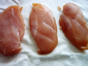 Достаньте филе из холодильника, тщательно промойте его и обсушите. Заверните куриное филе в марлю и опять отправьте в холодильник (минимум на час). Можно подержать в холодильнике дольше, тогда филе лучше провялится. Еще можно пару дней просушить его в подвешенном состоянии (в марле) в хорошо проветриваемом помещении.