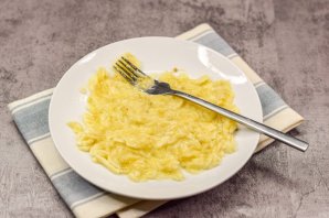 Банан очистите и разомните вилкой.