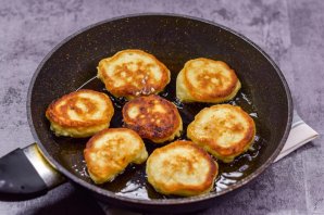 Разогрейте сковороду, влейте масло. При помощи столовой ложки выложите тесто в сковороду, жарьте оладьи на небольшом огне по 2 минуты с каждой стороны.