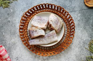 У рыбы отрежьте плавники, очистите от чешуи, удалите внутренности. Хорошо промойте рыбу холодной водой внутри и снаружи. Затем рыбу обсушите, разрежьте тушку на порционные куски.