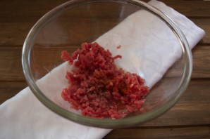 Из говядины приготовьте фарш. Покупной фарш не совсем подходит. Нужен свежий фарш из хорошего мяса без примесей (без сала, хлеба, лука).