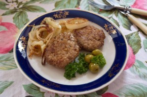 Блюдо готовится без лишних сложностей. Делаем и заправляем специями фарш, затем формируем бифштексы и жарим на горячей сковороде на масле. В той же сковороде, где жарились бифштексы, обжариваем лук. Готово Готовое блюдо можно подавать к столу.