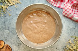 В яичную массу добавьте ванильный сахар, просейте муку с какао и аккуратно перемешайте сверху вниз до однородного, пышного теста.