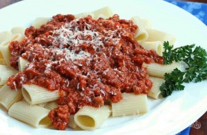 На приготовление соуса вы потратите не менее трех часов, поэтому будьте готовы к длительному времяпровождению на кухне. Для соуса можно использовать свежие томаты, консервированный соус. Можно подавать блюдо с любыми видами макарон. Храните соус отдельно, не смешивайте его с макаронами заранее, исключительно перед подачей на стол