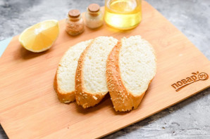 Багет нарежьте небольшими ломтиками.